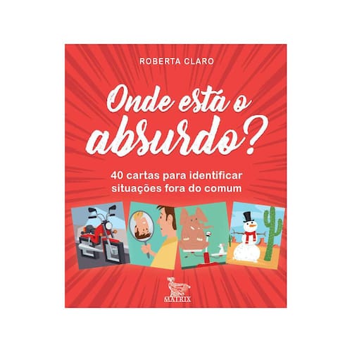 Neste livro em forma de caixinha estão 40 cartas, cada uma com um desenho representando uma situação absurda, fora do comum. Você pode usar essa obra de várias formas: 1. Descreva o que está vendo; 2. Sugira uma solução para resolver o que está acontecendo.