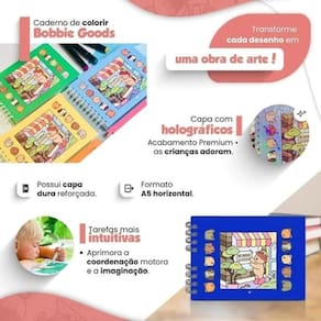 Livro De Colorir Bobbie Goods Capa Dura + Kit De 48 Canetinhas Marca Texto Ponta Dupla Rosa Livro para Colorir Bobbie Goods - Capa Dura com Laminação Holográfica Conteúdo do pacote: 01 Livro para Colorir + Estojo com 48 Canetinhas Ponta Dupla Principais Diferenciais: - Capa dura com laminação holográfica, criando um visual impactante e encantador. - 50 folhas de alta qualidade 180 g ideais para canetinhas, lápis de cor e marca-textos. - Tamanho A5 horizontal 15,5 x 21,5 cm , perfeito para explorar sua criatividade. - Acetato protetor incluso para evitar manchas entre as páginas. - Desenhos impressos apenas no lado frontal, oferecendo mais espaço para a sua arte. O livro é composto por 50 folhas robustas, com 180 gramas cada. A gramatura é perfeita para trabalhar com diferentes materiais de pintura, sem que haja o risco de vazamento para a próxima página, graças ao acetato que acompanha o produto. Por que escolher o nosso Livro para Colorir Bobbie Good - Qualidade superior e durabilidade - Inspire sua criatividade - Desenvolva suas habilidades artísticas e criativas Uma experiência artística única: O Livro de Colorir Bobbie Good não é apenas uma atividade de lazer, mas uma verdadeira experiência artística. É um item que vai além de um simples passatempo, sendo também uma peça de desejo para quem valoriza a beleza e o estilo. Para proteger ainda mais sua criatividade, o acetato especial serve como um escudo, evitando que a tinta ou o marcador transfira para a folha seguinte, mantendo sua arte impecável. Ideal para todos: Seja para adultos ou jovens, este livro é perfeito para quem quer aliviar o , personalizar ilustrações ou apenas passar o tempo de maneira criativa e relaxante. O Livro para Colorir Bobbie Goods é um presente ideal para qualquer ocasião, como aniversários, Natal ou Dia das Crianças. Além disso, é uma excelente opção para quem procura um item exclusivo e de qualidade para sua coleção pessoal. Marca: Não Informado