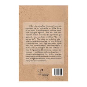 O livro de Apocalipse é um dos livros mais complexos de ser entendido na Bíblia Sagrada por conta de sua linguagem profética, isto é, uma linguagem figurada. Por isso, para compreender melhor esse livro tão importante, que apresenta uma revelação profética das coisas que são e das coisas que serão, ou seja, é uma exortação atemporal para o povo de Deus. O comentário de Henry é perfeito para o estudo deste livro. Matthew explica de forma didática e iluminadora as revelações de João contidas no livro de Apocalipse. Ele apresenta versículo por versículo - estruturado em forma de perícope - com aplicações e estudos. Obra perfeita para pessoas que estão começando a estudar esse livro Bíblico, mas perfeito também para acadêmicos mais avançados em conhecimento.