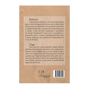 Hebreus - A Epístola aos Hebreus é de suma importância para o leitor da Sagrada Escritura, isso se dá pelo fato de que ao ler esta Epístola você entenderá mais sobre o Antigo Testamento, e porque ele é importante para o cristão. Como devemos interpretar o sacerdócio do Antigo Testamento? O que a Lei e os profetas representam para o cristão contemporâneo? São estas e outras perguntas que veremos ser respondidas no Livro de Hebreus. Tiago - Uma carta de cunho pastoral visando resolver questões extremamente relevantes, não só para aquela época como também para o nosso tempo. O que é a fé e como ela atua em nós? Esta pergunta é uma das questões que Tiago irá responder nesta carta. Os comentários de Matthew Henry são magníficos, fiéis ao texto bíblico, práticos e sem perder a profundidade espiritual dos textos.