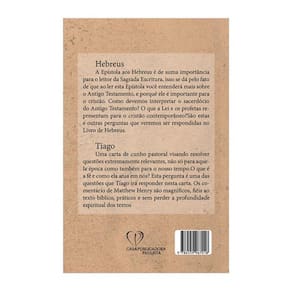Hebreus - A Epístola aos Hebreus é de suma importância para o leitor da Sagrada Escritura, isso se dá pelo fato de que ao ler esta Epístola você entenderá mais sobre o Antigo Testamento, e porque ele é importante para o cristão. Como devemos interpretar o sacerdócio do Antigo Testamento O que a Lei e os profetas representam para o cristão contemporâneo São estas e outras perguntas que veremos ser respondidas no Livro de Hebreus. tiago - Uma carta de cunho pastoral visando resolver questões extremamente relevantes, não só para aquela época como também para o nosso tempo. O que é a fé e como ela atua em nós Esta pergunta é uma das questões que Tiago irá responder nesta carta. os comentários de Matthew Henry são magníficos, fiéis ao texto bíblico, práticos e sem perder a profundidade espiritual dos textos. Ean: 9786559967018
