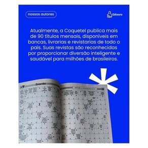 Relaxe, descubra e divirta-se: seu momento de bem-estar com o Caça-Palavras Ouro 96 páginas Nível fácil Passatempos com temáticas diversas: curiosidades, culinária, natureza, história, saúde, cultura e muito mais Ideal para iniciantes, adultos e idosos que buscam lazer, estímulo mental leve e uma pausa das telas O Caça-Palavras Ouro é uma edição pensada para proporcionar momentos de prazer, relaxamento e estímulo leve da mente. Com 96 páginas de passatempos acessíveis, este volume traz uma seleção de jogos temáticos com base em textos informativos e divertidos sobre história, culinária, saúde, natureza, música e curiosidades culturais. Cada caça-palavras é acompanhado por um conteúdo editorial que instrui, entretém e guia o desafio. Indicado para leitores de todas as idades, especialmente adultos e idosos que desejam manter a mente ativa, reduzir o desconforto e exercitar a atenção de forma prazerosa e sem pressão. Com a curadoria editorial da Coquetel, marca sinônimo de qualidade e tradição, esta publicação é perfeita para quem busca bem-estar com todas as letras.