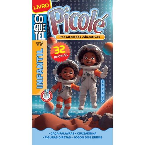 Reduza o tempo de tela com os passatempos Coquetel! Quer promover momentos de diversão longe das telas para os pequenos? Deixa com a gente!O livro Picolé — Passatempos educativos  traz 32 páginas completamente coloridas e repletas de caça-palavra s, cruzadinhas, figuras diretas e jogos dos erros, pensados para crianças de 6 a 9 anos:Desenvolvimento cognitivo: atividades que reforçam memória de trabalho, reconhecimento de padrões e interpretação de texto, ampliando o vocabulário sem perceber. Coordenação motora fina: colorir, circular palavras e encontrar diferenças fortalecem o controle do lápis e a destreza manual, fundamentais para a escrita. Concentração e paciência: desafios graduais promovem persistência e disciplina, criando hábito s de foco em cada página. Aprendizado divertido: design vibrante e níveis de dificuldade ajustados fazem do estudo um jogo prazeroso. Portátil e inclusivo: perfeito para casa, escola ou viagens, mantém as crianças próximas ao papel e longe das telas! Invista em um entretenimento educativo de qualidade: adicione agora mesmo  Picolé  ao carrinho e transforme o tempo de tela dos pequenos em horas de passatempos lúdicos e educativos!