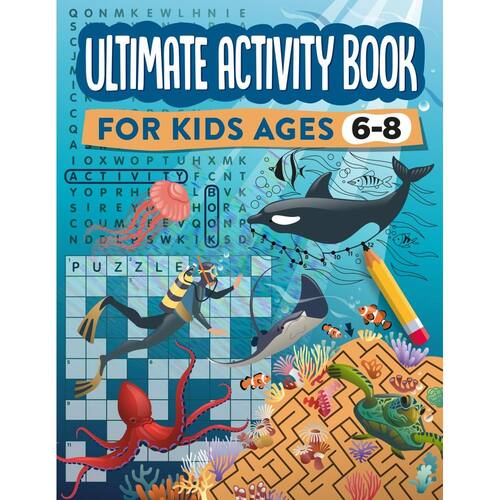 Livro de atividades definitivo para crianças de 6 a 8 anos: 100 páginas divertidas de labirintos, ponto a ponto, busca de palavras e palavras cruzadas