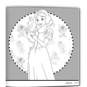 Livro de colorir arte & cor branca de neve Dê cores para personagens como o príncipe encantado, os sete amigos, os animais do bosque, a rainha má e a bruxa que lhe dá uma maçã envenenada