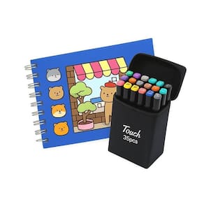 Livro De Colorir Azul 48 Desenhos + 36 Canetas Marcador