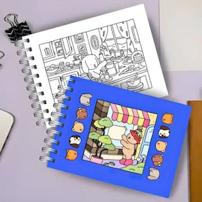 - Páginas com verso branco: impede que a tinta interfira na próxima ilustração, preservando a integridade dos desenhos
