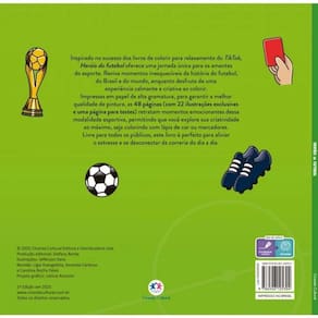 Inspirado no sucesso dos livros de colorir para relaxamento do Tik Tok, Heróis do Futebol oferece uma jornada única para os amantes do esporte. Reviva momentos inesquecíveis da história do futebol, do Brasil e do mundo, enquanto desfruta de uma experiência e criativa ao colorir. Impressas em papel de alta gramatura, para garantir a melhor qualidade de pintura, as 48 páginas com 22 ilustrações exclusivas e uma página pata testes retratam momentos emocionantes dessa modalidade esportiva, permitindo que você explore sua criatividade ao máximo, seja colorindo com lápis de cor ou marcadores. Livres para todos os públicos, este livro é perfeito para aliviar o e se desconectar da correria do dia a dia. Editora: Ciranda Cultural Autor: Jefferson Deto Idioma: Português Páginas: 48 Dimensões: L 24.00 x A 24.00 x E 0.50 Isbn: 9786526125304 Coleção: Comfy & cozy books Faixa Etária: + 4 anos Assuntos tags : Relaxar, Arteterapia, Colorir, Diversão, Pintar, Pintura, Futebol, Herói Bisac: Jogos e Atividades / Jogos e Atividades / Livros de Colorir Encadernação: Brochura