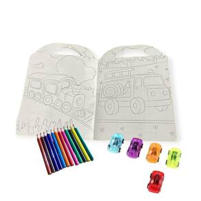 Divirta-se com este incrível livro de colorir utilizando o mini lápis de cor para dar cor ao mundo dos veículos.