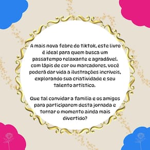 Livro de Colorir TikTok Magic com 24 Desenhos Nome: Comfy Dinosaurs Para um passatempo repleto de tranquilidade e calmaria, o livro de colorir que se tornou tendência nas redes sociais. Ideal para lápis de cor, canetinhas e marcadores para garantir que sua arte fique impecável, uma experiência que vai além do simples ato de pintar - Condição: Novo Nunca Utilizado - Marca: Livros Magic - Capa: Mole - Acabamento: Em brochura - Páginas: 24 - Gramatura: 180 g/m - Publicado em: 2025 - Formato: 24 24 cm largura x altura