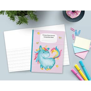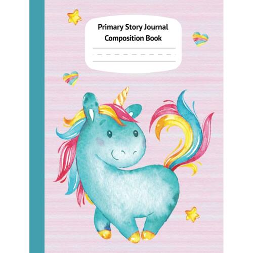 Livro de composição do diário de histórias primárias Blue Unicorn Pastel: desenho e escrita de nível escolar K-2, caderno criativo de linha média pontilhada da primeira infância ao jardim de infância (Fantasy Magical Creatures)