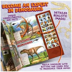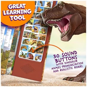Este incrível livro de sons de dinossauros é uma ferramenta educativa fantástica que permite às crianças associar 30 espécies de dinossauros a botões sonoros que, ao serem pressionados, emitem rugidos realistas, ajudando os pequenos a aprender a pronúncia dos nomes dos dinossauros. Cada dinossauro é apresentado com informações detalhadas sobre pronúncia, significado, dieta, localização, tamanho e é comparado ao lado de um humano. Com impressão de alta qualidade e materiais resistentes, este livro de dinossauros traz imagens realistas em cores vibrantes de paleoartistas líderes mundiais. A capa do livro é feita de material resistente e as páginas de papelão evitam que ele dobre. Com um tamanho de 28x25 centímetros, é maior do que qualquer outro livro de sons de dinossauros disponível no mercado. O presente perfeito para os amantes de dinossauros, seja no Natal, aniversário ou festa temática de dinossauros. Deixe seu filho se tornar um especialista em dinossauros com este livro interativo e educativo, garantindo horas de diversão e aprendizado.