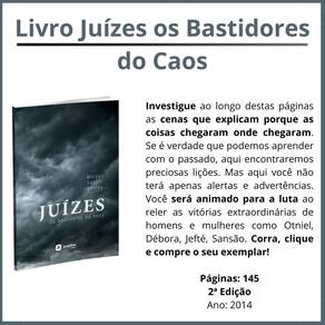 "Nada na vida acontece por acaso, especialmente se você pertence ao povo de Deus. Ninguém se torna idólatra, adúltero, violento do dia para a noite. Existe um longo processo de sedimentação de condutas, de cauterização de consciências, que nos leva àquele ponto. Não se pode alegar que a situação chegou a este ponto de uma hora para outra, sem que ninguém percebesse."Este trecho do livro Juízes, os bastidores do caos resume bem sua mensagem. Foi uma época tumultuada, cheia de altos e baixos. Uma marca do povo de Israel, mas que de certa forma também nos define. Todos estamos sujeitos a nos afastar de Deus. Por isso, essa história é tão importante e atual.Investigue ao longo destas páginas as cenas que explicam porque as coisas chegaram onde chegaram. Se é verdade que podemos aprender com o passado, aqui encontraremos preciosas lições.Mas aqui você não terá apenas alertas e advertências. Você será animado para a luta ao reler as vitórias extraordinárias de homens e mulheres como Otniel, Débora, Jefté, Sansão. Certamente vai ficar muito empolgado ao ver como o Senhor Deus age em todas as circunstâncias com poder tão grande que não encontra rival. Vai se emocionar com as ações de graça e misericórdia de um Deus que não consegue reter sua ira diante de um pecador arrependido.Por tudo isso, Juízes vale a pena. Leia por algumas horas e use para a vida inteira.