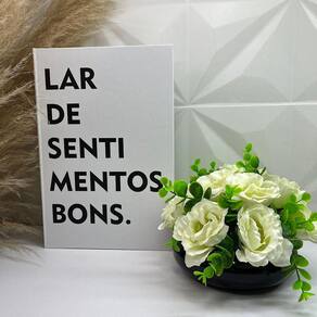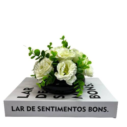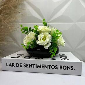Nada mais encantador, original e inspirador do que utilizar livros na decoração de diversos ambientes, como salas de estar, escritórios, quartos, home office e onde mais sua imaginação permitir. Os livros decorativos são a mais nova tendência na decoração contemporânea e permitem diversas combinações e utilizações, dando um ar de sofisticação em mesas de centro, aparadores, prateleiras, escrivaninhas etc. Esse lindo livro estampa 'Lar De Sentimentos Bons', irá encantar você pela riqueza de detalhes e qualidade no acabamento, junto do vaso preto de cerâmica que da um toque todo especial no ambiente.