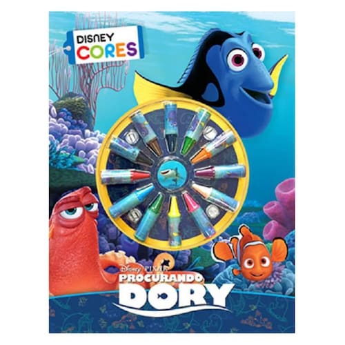 Descubra seu talento artístico com os divertidos personagens do filme Procurando Dory. Use os gizes de cera que acompanham o livro e dê asas à sua imaginação.