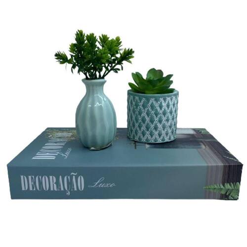 Nada mais encantador, original e inspirador do que utilizar livros na decoração de diversos ambientes, como salas de estar, escritórios, quartos, home office e onde mais sua imaginação permitir. Os livros decorativos são a mais nova tendência na decoração contemporânea e permitem diversas combinações e utilizações, dando um ar de sofisticação em mesas de centro, aparadores, prateleiras, escrivaninhas etc. Esse lindo livro estampa 'Decoração Luxo', irá encantar você pela riqueza de detalhes e qualidade no acabamento, junto dos vasos de cerâmica trabalhado que dão um toque todo especial no ambiente.