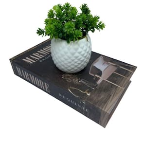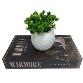 Nada mais encantador, original e inspirador do que utilizar livros na decoração de diversos ambientes, como salas de estar, escritórios, quartos, home office e onde mais sua imaginação permitir. Os livros decorativos são a mais nova tendência na decoração contemporânea e permitem diversas combinações e utilizações, dando um ar de sofisticação em mesas de centro, aparadores, prateleiras, escrivaninhas etc. Esse lindo livro estampa 'Marmore Requinte', irá encantar você pela riqueza de detalhes e qualidade no acabamento, junto do vaso branco de cerâmica com trabalhado que da um toque todo especial no ambiente.