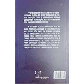 Deus escolhe os fracos e os faz fortes, Deus escolhe aqueles que parecem menores e os faz crescer. Os homens que estão Bíblia não são necessariamente os melhores, os mais influentes, mas são aqueles que foram capacitados por Deus para mudarem a história do cristianismo e do mundo. Neste livro, você poderá aplicar as lições que aprendemos com os homens improváveis escolhidos por Deus.