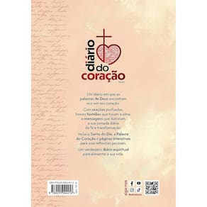 Um diário em que as palavras de Deus encontram eco em seu coração. Com orações profundas, breves homilias que tocam a alma, e mensagens que iluminam a sua jornada diária de fé e transformação. Inclui o Santo do Dia, a Palavra do Coração e páginas interativas para suas reflexões pessoais. Um verdadeiro diário espiritual para alimentar a sua vida.