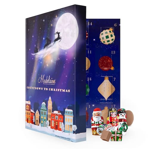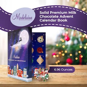 - Livro do calendário do advento: medindo 10 polegadas x 7 “x 2" e abrindo até 14 polegadas, o livro do calendário do advento de chocolate da Madelaine é um presente encantador. Cada uma das 24 porções é uma guloseima substancial, com cerca de 0,3 onças, totalizando 6,96 onças de pura delícia.