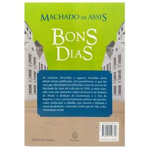 A série de crônicas intitulada Bons Dias, publicada entre 1888 e 1889, é a perfeita síntese desse registro machadiano. Tanto que nela encontramos, por exemplo, uma sátira ao transporte do meteorito caído em Bedengó e, no mesmo texto, uma discussão sobre a implantação do federalismo no Brasil. Além da política da época, as crônicas trazem ainda para o leitor temas favoritos de Machado, como a medicina popular, os neologismos, e o espiritismo. Leves e consistentes, as crônicas abordam assuntos sérios, sem cair no lugar-comum.