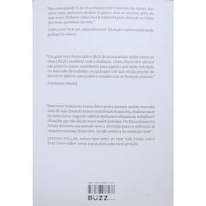 “Um guia bem-humorado e fácil de acompanhar sobre como ter uma relação saudável com o dinheiro. Detox financeiro oferece um primeiro passo consistente para aqueles que estão entrando no mercado de trabalho ou qualquer um que ainda precise desenvolver hábitos bons e destemidos com as finanças pessoais. ” — Publishers Weekly “Sou uma grande fã do Detox financeiro! O método da Ashley descreve como podemos alinhar os gastos com os valores, além de usar nosso dinheiro como uma ferramenta para alcançar as coisas que mais queremos na vida. ” — Farnoosh Torabi, especialista em finanças e apresentadora do podcast So money “Bem-estar financeiro é uma chave para o sucesso muitas vezes deixada de lado. Quando temos estabilidade financeira, podemos aceitar mais riscos, negociar salários melhores e abandonar trabalhos e situações que não são de seus maiores interesses. No Detox financeiro, Ashley descreve um projeto novo e divertido para os millenials alcançarem sucesso financeiro. Eu não poderia recomendar mais! ” — Lindsey Pollak, autora best-seller do New York Times com o livro O novo líder: novas regras para uma nova geração.
