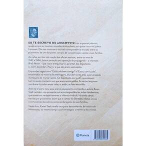 Eu te escrevo de Auschwitz traz as poucas palavras, quase sempre as mesmas, enviadas de Auschwitz por quase cinco mil judeus franceses. Elas nos mostram a incrível correspondência trocada entre os prisioneiros de um dos piores campos de concentração nazista e suas famílias. As cartas escritas sob coação dos oficiais nazistas, entre os anos de 1942 e 1944, faziam parte de uma operação de propaganda – a chamada Brief-Aktion – que visava tranquilizar os parentes dos deportados e, assim, esconder o horror a que eles eram submetidos. Termos vagos como “Está tudo bem comigo” e “Estou com saúde”, encontrados na maioria das mensagens, elucidam ainda mais a perversidade da máquina de morte nazista. Os deportados escreviam que estavam bem no exato momento em que eram encurralados.