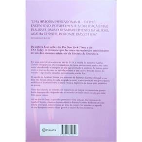 Romance baseado em um dos episódios mais intrigantes da história da literatura: o desaparecimento, por onze dias, da autora Agatha Christie. Da autora best-seller do The New York Times de A única mulher. Em uma noite de dezembro no ano de 1926, a rainha do suspense Agatha Christie desapareceu. Os investigadores da época encontraram apenas seu carro vazio, abandonado às margens de um lago profundo e sombrio. As únicas pistas eram as marcas de pneu na estrada próxima e um casaco deixado dentro do veículo – algo muito estranho, considerando a noite fria. O marido de Agatha Christie, um veterano da Primeira Guerra Mundial, e sua filha não faziam ideia de onde ela poderia estar, e uma operação sem precedentes mobilizou a Scotland Yard, a mídia e toda a Inglaterra na busca pelo paradeiro da autora. Onze dias depois, no entanto, ela reapareceu, de forma tão misteriosa quanto havia desaparecido, alegando não se recordar de onde estava ou do que tinha feito nesse tempo. Até os dias de hoje, o episódio permanece sem solução. Os romances de Agatha Christie, clássicos incontestáveis e frutos da mente brilhante de uma autora sem igual, sobreviveram ao teste do tempo. No entanto, o segredo de seu desaparecimento talvez guarde o maior de seus mistérios.