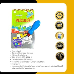 Contém : 1 unidade livro infantil veículos surpresas com água + pincel