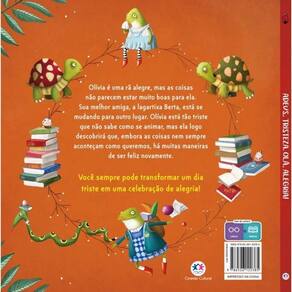 Olívia, a rã, é cheia de alegria... Mas hoje seu coração está apertado. Sua melhor amiga, a lagartixa Berta, vai se mudar, e Olívia não sabe como lidar com tanta tristeza. Como seguir em frente sem alguém tão especial por perto Aos poucos, ela vai perceber que, mesmo quando as coisas não saem como a gente gostaria, ainda existem muitas formas de encontrar a felicidade. Porque até um dia triste pode se transformar em um novo começo - cheio de afeto, lembranças bonitas e novas descobertas.