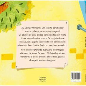 Editora: Ciranda na Escola Ilustrador: Júnior Caramez Idioma: Português Páginas: 32 Dimensões: L 24.00 x A 24.00 x E 0.50 ISBN: 9786553846029 Faixa Etária: + 4 anos Assuntos tags : Palavras, Rimas, Primeiros conceitos, Aprendizado, Língua portuguesa BISAC: Literatura Infantil / Literatura Infantil / Conceitos / Palavras Encadernação: Brochura Acabamento: Laminação fosca Marca: Não Informado