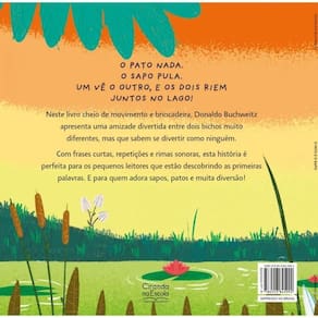 Editora: ciranda na escola Ilustrador: júnior caramez Idioma: português Páginas: 32 Dimensões: l 24.00 x a 24.00 x e 1.00 Isbn: 9786553845992 Faixa etária: + 4 anos Assuntos tags : natureza, rimas, meio ambiente, pato, sapo Bisac: literatura infantil / literatura infantil / ciência e natureza Encadernação: brochura Acabamento: laminação fosca Marca: Não Informado