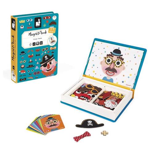 Descubra os Magneti'books, jogos educativos e divertidos, adequados para crianças a partir de 3 anos - que podem ser facilmente manuseados e levados para qualquer lugar! A premissa é simples: as crianças podem criar rostos engraçados ou personagens de acordo com os modelos fornecidos ou dando total liberdade à sua imaginação. Um chapéu, óculos, etc... com os 82 ímãs e 12 cartões modelo fornecidos, todas as combinações são bem-vindas!