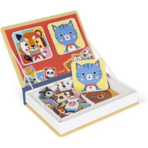 Você já descobriu os Magneti'books Estes livros magnéticos portáteis e educacionais são adorados tanto por jovens quanto por adultos Então, como eles funcionam Esta caixa magnética inclui uma série de itens magnéticos diferentes para as crianças montarem, de acordo com o modelo ou da maneira que preferirem Este jogo com suas peças de papelão transportará crianças com idade a partir de 3 anos para o reino animal, com suas 80 peças magnéticas e 8 cartões de modelo. Dentro, você pode usar o quadro magnético para montar uma imagem do animal mostrado em cada cartão usando os ímãs fornecidos. Todas as peças magnéticas são completamente intercambiáveis, então as crianças podem se divertir por horas criando todos os tipos de animais malucos e engraçados Muitas risadas garantidas Ajuda as crianças a desenvolver sua imaginação e habilidades motoras finas. Este produto é feito de material certificado FSC e outros materiais controlados.