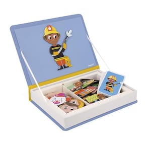 Vamos inventar algumas profissões! Que trabalhos inventivos as crianças irão criar? Com este Magnéti'Book dedicado às profissões, crianças a partir de 3 anos poderão descobrir 16 profissões reais e também inventar muitas outras! Os Magnéti'Books são caixas magnéticas que contêm numerosos imãs que podem ser fixados em uma superfície magnética.