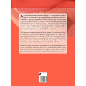 Este manual explora as técnicas de ortodontia estética, abordando a ortodontia lingual e os alinhadores invisíveis. O leitor encontrará informações sobre diagnóstico, planejamento e execução de tratamentos, com exemplos de casos clínicos e ilustrações.