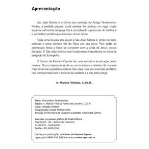 Esta novena tem como objetivo levar as comunidades a conhecer a vida e a missão do maior de todos os profetas e a aprender, com seu exemplo, a nos comprometer com o anúncio da verdade e com a luta pela justiça, apontando-nos para o anúncio de Jesus Cristo e seu Reino.