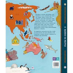 Descubra o mundo, seus países, suas bandeiras e seus costumes por meio dos mapas. Desde o Ártico até a Antártica, este atlas apresenta cada um dos continentes, com dados sobre habitantes, superfície e densidade populacional, assim como os países que fazem parte deles. Além disso, mostra os principais monumentos, costumes, gastronomia, fauna e flora, personalidades históricas e culturais. As magníficas ilustrações são fiéis a cada um dos tesouros de nosso planeta e vão incentivar os jovens leitores a admirar e a conhecer suas maravilhas.