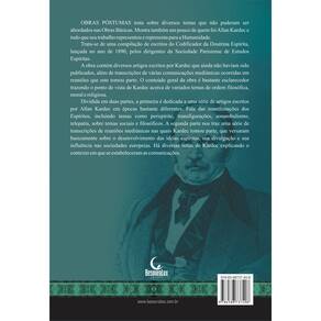 OBRAS PÓSTUMAS trata sobre diversos temas que não puderam ser abordados nas Obras Básicas. Mostra também um pouco de quem foi Allan Kardec e tudo que seu trabalho representou e representa para a Humanidade. Trata-se de uma compilação de escritos do Codificador da Doutrina Espírita, lançada no ano de 1890, pelos dirigentes da Sociedade Parisiense de Estudos Espíritas. A obra contém diversos artigos escritos por Kardec que ainda não haviam sido publicados, além de transcrições de várias comunicações mediúnicas ocorridas em reuniões que este tomou parte. O conteúdo geral da obra é bastante esclarecedor trazendo o ponto de vista de Kardec acerca de variados temas de ordem filosófica, moral e religiosa. Dividida em duas partes, a primeira é dedicada a uma série de artigos escritos por Allan Kardec em épocas bastante diferentes. Fala das manifestações dos Espíritos, incluindo temas como perispírito, transfigurações, sonambulismo, telepatia, sobre temas sociais e filosóficos. A segunda parte nos traz uma série de transcrições de reuniões mediúnicas nas quais Kardec tomou parte, que versaram basicamente sobre o desenvolvimento das ideias espíritas, sua divulgação e sua influência nas sociedades europeias. Há diversas notas de Kardec explicando o contexto em que se estabeleceram as comunicações.