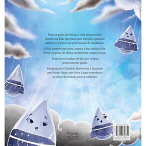 A vida para as gotas de chuva estava muito monótona. Elas queriam mais emoção, queriam aventura. E para isso precisavam de novas roupas. O Sol, sempre um astro, trouxe a boa notícia Em breve as gotas de chuva receberiam roupas novas. Estavam cansadas até de usar roupas praticamente iguais. Escrito por Donaldo Buchweitz e ilustrado por Heitor Neto, o texto é uma reverência ao olhar da criança para a natureza.