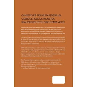 O livro em que ensina os passos necessários para que o leitor alcance suas metas e aproveite ao máximo seu potencial. De Tony Robbins, do documentário Eu não sou seu guru e autor do best-seller Poder sem limites. Em Passos de gigante, Tony Robbins será seu mentor e provará que é possível deixar de lado a total estagnação criativa e seguir em direção ao sucesso absoluto. Com uma metodologia inovadora, o autor detalha passos que tornarão você um vencedor, em 365 lições imperdíveis, uma para cada dia do ano. Tomando como base a teoria da Programação Neurolinguística (PNL), este livro mostra, de forma prática e eficiente, como tomar as rédeas das situações que nos cercam, para vivermos uma vida plena e cheia de realizações. Anthony Robbins é um escritor, filantropo, palestrante e empresário. De origem pobre, teve sua vida mudada ao conhecer os métodos da Programação Neurolinguística (PNL) e aplicá-los em sua rotina. Desde então, sua missão consiste em espalhar seus conhecimentos e transformar as vidas de milhões de pessoas pelo mundo. Especificações Título: Passos De Gigante Autor: Tony Robbins Tipo de capa: Comum Número de páginas: 406 páginas Editora: BestSeller; Edição: 7 (17 de julho de 2017) Idioma: Português ISBN-10:8546500460 ISBN-13:9788546500468 Dimensões do produto: 22,8 x 15,6 x 2,2 cm Peso de envio: 544 g Marca: BestSelle