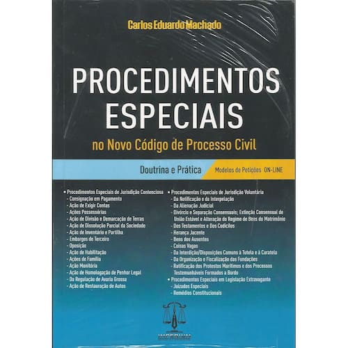 Livro Procedimentos Especiais Neste livro, temos uma análise minuciosa dos Procedimentos Especiais composto pelo Código de Processo Civil. Há dois modelos de procedimentos especiais, os de jurisdição contenciosa e os de jurisdição voluntária. Os de jurisdição contenciosa trazem à baila a solução de litígios, enquanto os de jurisdição voluntária são exclusivamente à administração judicial de interesses privados não litigiosos. Não há processos nos feitos de jurisdição voluntária, mas somente procedimentos que compõem a coordenação formal de atos não processuais, onde o juiz não cumpre função jurisdicional, mas tão só administrativa. É o que advém com as alienações judiciais, as nomeações de tutores e curadores, o divórcio e as partilhas consensuais. Assim, nos procedimentos especiais de jurisdição contenciosa, há um complexo de atividades que transformam as chamadas ações executivas "lato sensu" ações possessórias, divisórias, demarcatórias, de consignação em pagamento, de despejo etc. . Nesses casos, o Código pretende adequar o procedimento às particularidades e exigências do direito material cogitado no litígio. O último procedimento contemplado no livro é de Procedimentos Especiais em Legislação Extravagante. Os sistemas processuais dos Juizados são regulados por princípios próprios, enumerados no art. 2º, da Lei nº 9.099/95: oralidade, simplicidade, informalidade, economia processual e celeridade, buscando sempre que possível a conciliação ou transação. Eles também são válidos para os Juizados Federais e da Fazenda Pública. Idioma: português Condição do item: novo Tipo de narração: manual Tipo de capa: comum