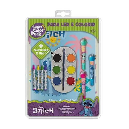 Livro Stitch para Colorir Carimbo Canetinha Giz Aquarela