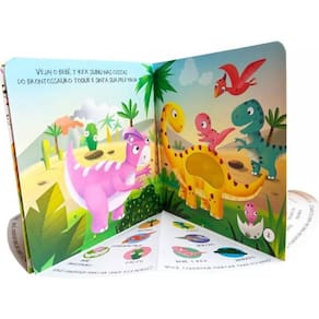 Livro Carrossel com Toque e sinta, procure e encontre os dinossauros neste incrível livro. Além de desenvolver a percepção tátil, com história, trazendo texturas para os dedinhos.