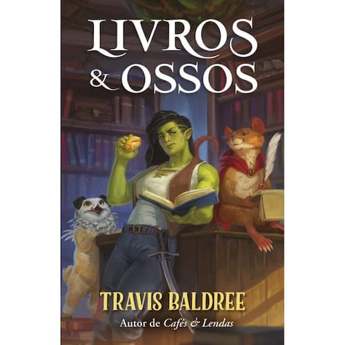 Ambientada no universo do best-seller Cafés e Lendas, a prequel Livros e Ossos é uma jornada de alta fantasia, primeiros amores e muitos livros antigosViv é uma jovem orc que tem sede de batalhas e de vitória, mas sua carreira com os notórios Corvos de Rackam, um bando de mercenários velhos de guerra, vai de mal a pior.Depois de ser ferida durante uma caçada a uma poderosa necromante, Viv é enviada contra sua vontade para Murk, uma cidadezinha litorânea, para se recuperar. Para sua tristeza, o m áximo de aventura que ela deve conseguir por ali é observar as ondas quebrando na costa.Esquecida pelos companheiros de guerra, Viv se distrai passando os dias na livraria Thistleburr, e se surpreende com o fato de que os livros (e a dona mal-humorad a do lugar) sejam tão divertidos. Mas essa pode ser justamente a mudança de que precisa para enfim dar um novo rumo à sua vida.Só que as façanhas que Viv tanto deseja talvez não estejam tão distantes… Em meio a viajantes misteriosos, gnomos ranzinzas , crushes de verão e um número preocupante de esqueletos à solta, a orc vai descobrir que há muito mais na tranquila Murk do que ela poderia supor.Emocionante e com um toque de humor, Livros & Ossos reflete sobre a importância da vida em comunida de e a busca por um propósito em meio às peripécias do destino. Situado no mesmo universo de Cafés & Lendas, o livro narra as aventuras da jovem orc antes de ela decidir aposentar sua espada e abrir a própria cafeteria.