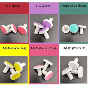 O produto acompanha 6 lixas, 3 para bebes variando a idade e 3 para adultos.