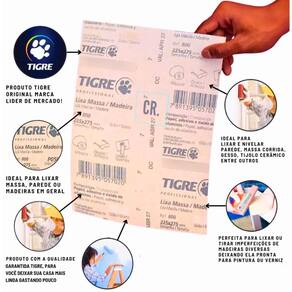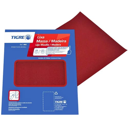 Lixa Massa/Madeira 800 Grossa 60 – Pincéis Tigre A Lixa Massa/Madeira Grossa 60 da Pincéis Tigre é ideal para o lixamento de rebocos, massa corrida, gesso e alvenaria, ajudando a eliminar imperfeições e preparar as superfícies para a pintura. Também é excelente para madeira, deixando caixas, móveis e peças sem farpas ou desníveis, garantindo um acabamento uniforme e profissional.