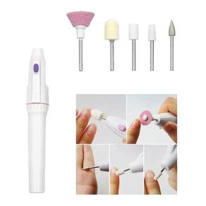 Funções da lixa de cinco acessórios: 1 Cone de metal: Remova a pele morta, calosidades e calosidades. 2. Tambor de moagem: Nivela e alisa pregos grossos e superfícies onduladas. 3. Cone de moagem pequeno: entalhe nos cantos e pontos de difícil acesso. 4. Cones de feltro suave: polir as unhas que têm um brilho saudável, estimular as cutículas e estimular a circulação das unhas para promover o crescimento das unhas. 5 Cabeças de esmeril planas: dê forma profissional às unhas e dê o acabamento com uma borda lisa e macia. Marca: Moon'S