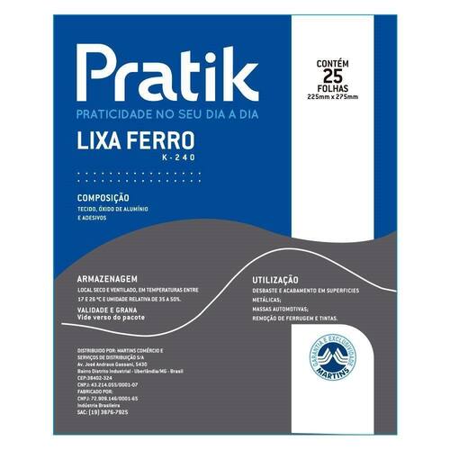 Características do Produto: Marca: Pratik Produto: Lixa Ferro K-240 Formato: Folhas Dimensões: 225mm x 275 mm