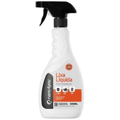 Lixa líquida para madeiras Ideal para madeiras queimadas do sol e sem verniz. Lixa líquida é recomendado para madeiras sem verniz, castigados pela ação do tempo. O produto reage as fibras queimadas da madeira, facilitando sua remoção, devolvendo seu aspecto natural.